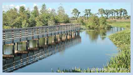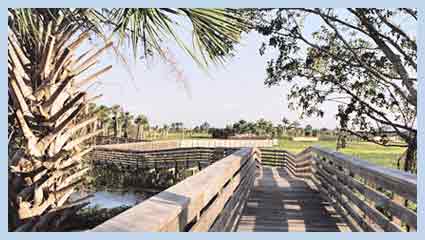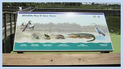 The 1.5 mile elevated boardwalk takes you on a journey through a typical south Florida wetland. Along the way, you will find interpretive signs that explain about the habitat and what you can expect to see. There are also benches on the boardwalk (two (2) benches on the 1/2 mile trail, and six (6) benches on the one (1) mile trail) and around the outside of the building for those that would like to sit and enjoy the beautiful scenery.