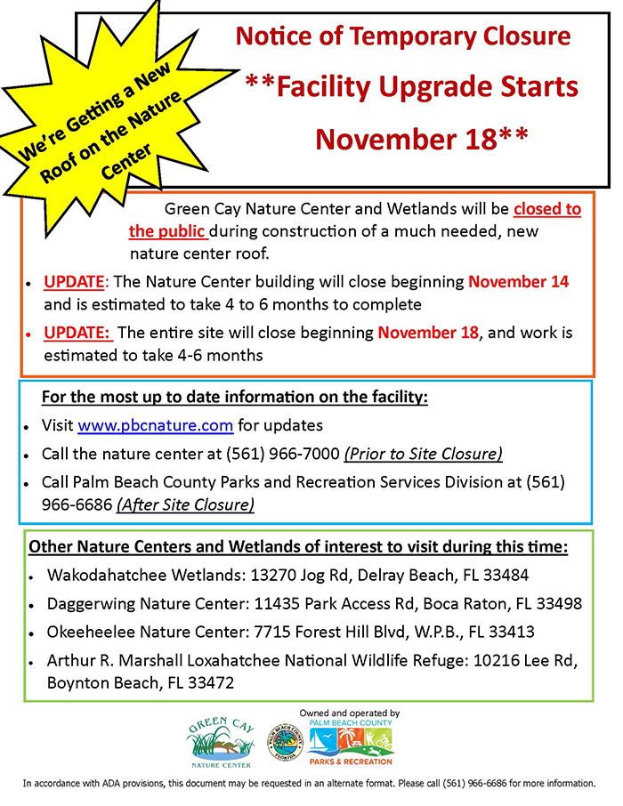HOURS: Vary according to season - see facility's website: Green Cay Nature Center